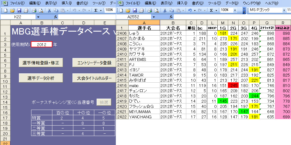 「MBGC2012ボーナスチャレンジ」の最終結果です。
