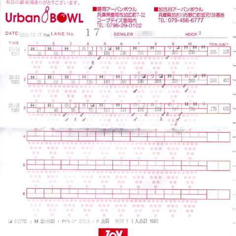ちなみに最終ゲームは、膝を痛めた為にスコアを落としてしまったとのことです。(お大事になさって下さい)