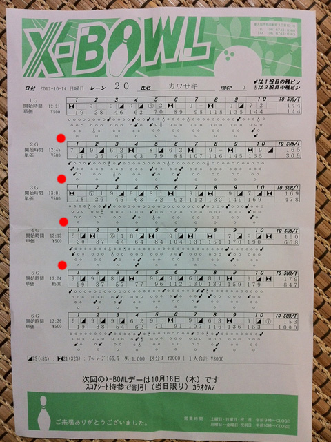 | 12 | MIYUMAMA | 728 | 15 | 13 | 17 | 11 | 0 | スペア率40% |