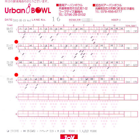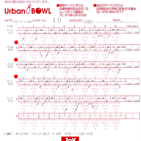 | プラス賞 | 1 | 0 | 0 | ハンデ込みアベレージが、200.0ピン以上を達成 |