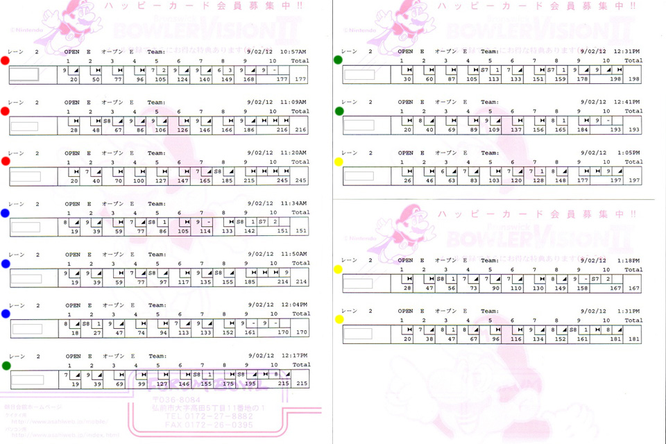 | 最多マーク賞 | 40 | 1 | 0 | 1シリーズ中、マーク(ストライクとスペア)数が最多 |