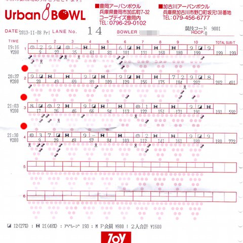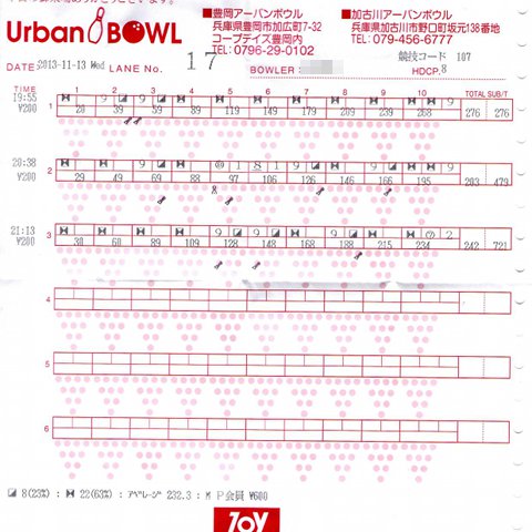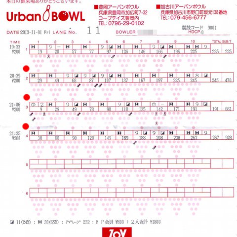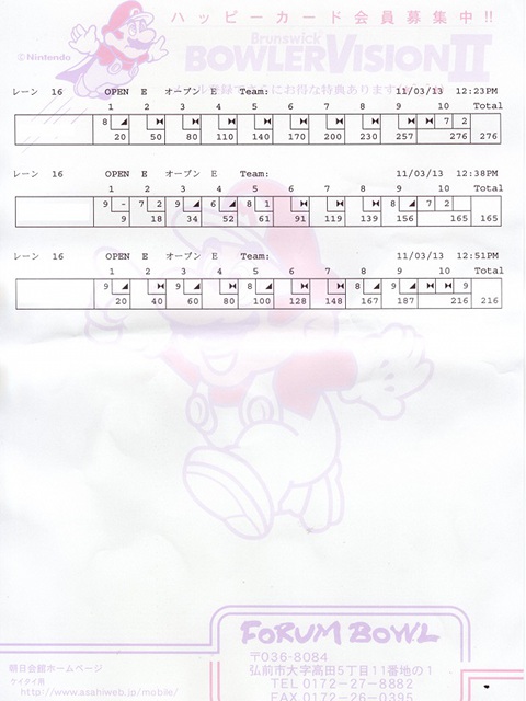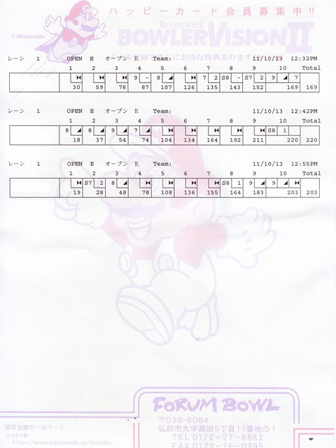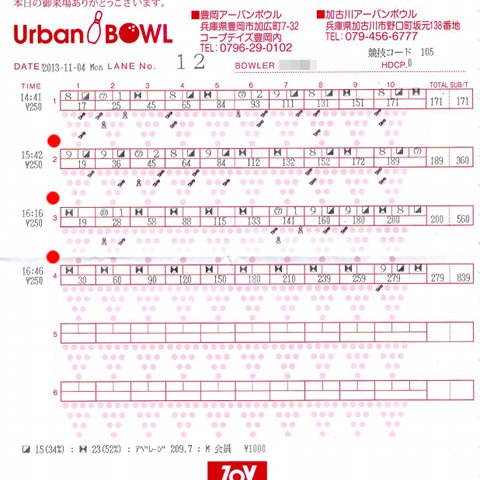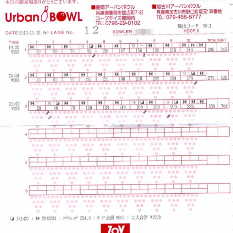| 2 | ! | 804 | 0 | 728 | 3 | 1 | ハイゲーム、最多マーク、最多ストライク、パーフェクトx1、 セミパーフェクトx1、殊勲3、敢闘3、プラス |