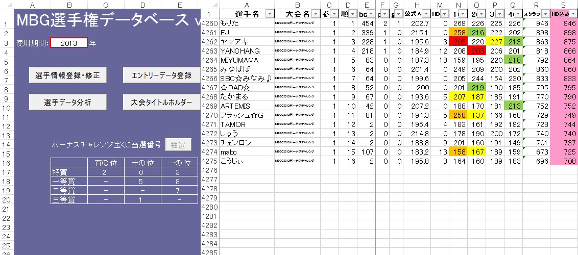 「MBGC2013ボーナスチャレンジ」の最終結果です。