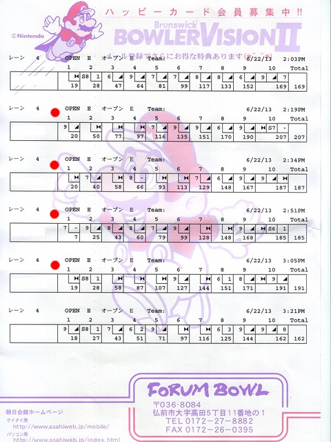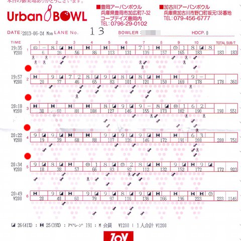 ![]() | もりた | 946 | 0 | 454 | 2 | 1 | ハイゲーム、最多ストライク、殊勲、敢闘、ノーミス |
