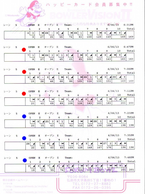 | 6 | FJ | 704 | 0 | 163 | 0 | 0 | ハイゲーム3位、最多ストライク、 セミパーフェクトx1、殊勲3、敢闘3、プラス |