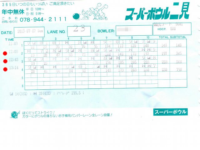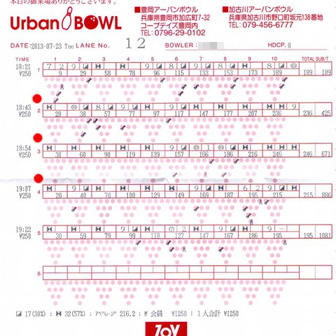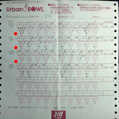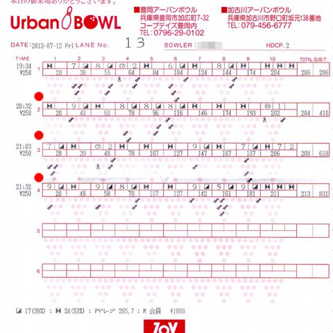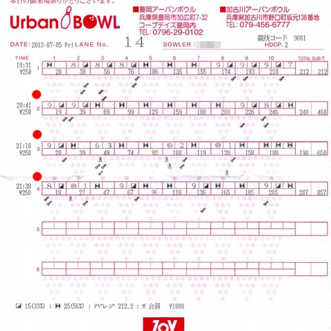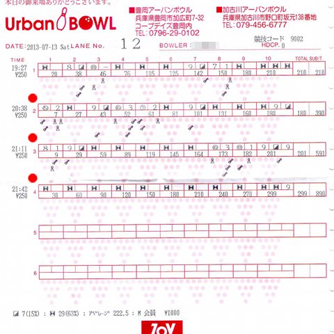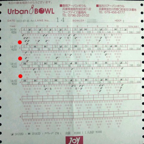 | 11 | しゅう | 680 | 0 | 146 | 0 | 0 | ハイゲーム2位、最大ローハイ差、セミパーフェクトx1、 殊勲3、敢闘2、プラス、ノーミスx1、連荘2 |