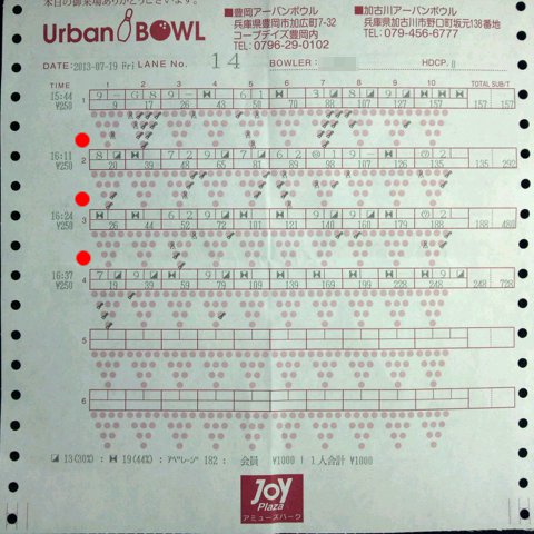 ご存知の通り、これは最終投球で「3ピン残り」だったことが分ります。