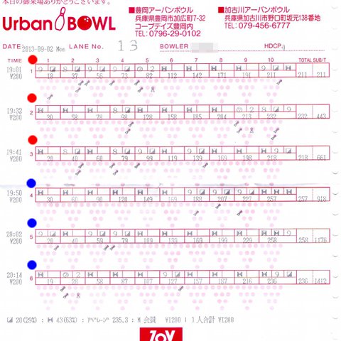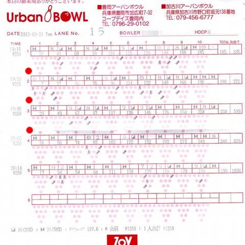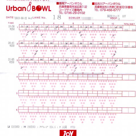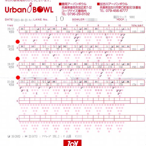 | プラス賞 | 1 | 0 | 0 | ハンデ込みアベレージが、200.0ピン以上を達成 |