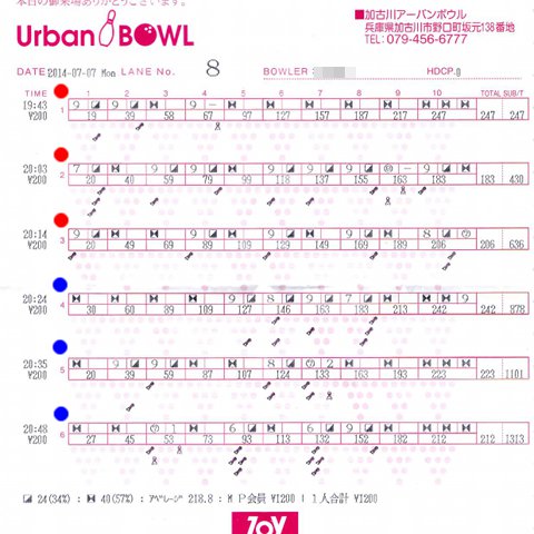 | 10 | しゅう | 677 | 0 | 385 | 1 | 0 | 最多マーク、最多ストライク、殊勲5、敢闘1、プラス、ノーミスx2、連荘3 |
