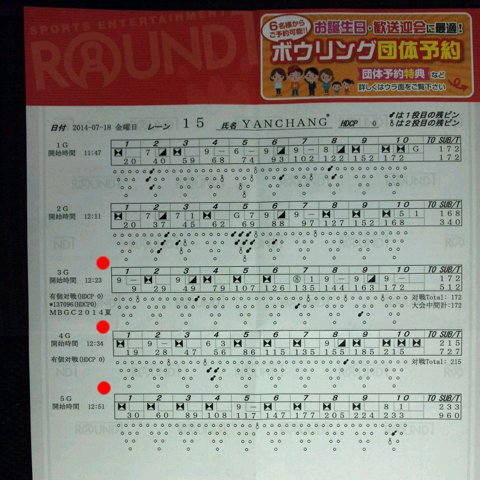 | 3 | チェンロン | 722 | 4 | 121 | 1 | 0 | ハイゲーム、殊勲6、敢闘3、プラス、ノーミスx1、連荘8 |