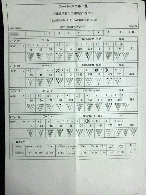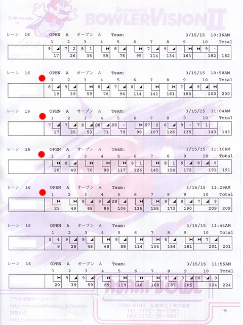 ![]() | FJ | 837 | 0 | 224 | 1 | 0 | 最多マーク、最多スペア、特別浪静30、ノーミスx1 |