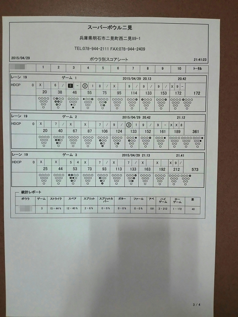 | ハイゲーム3位賞 | ! | 289ピン |