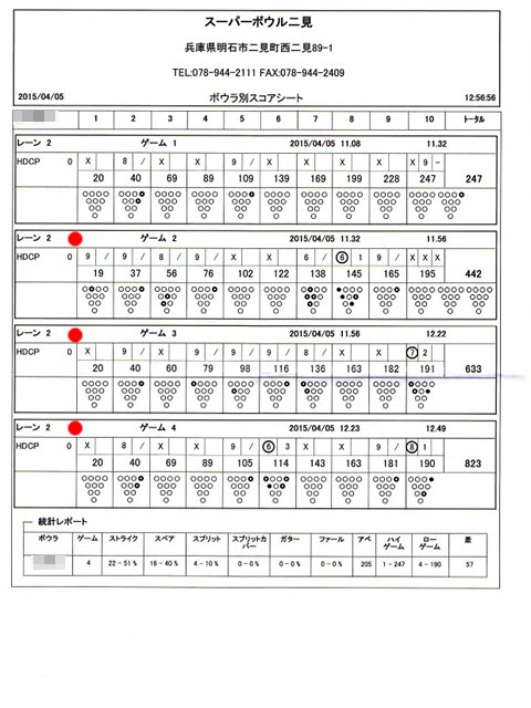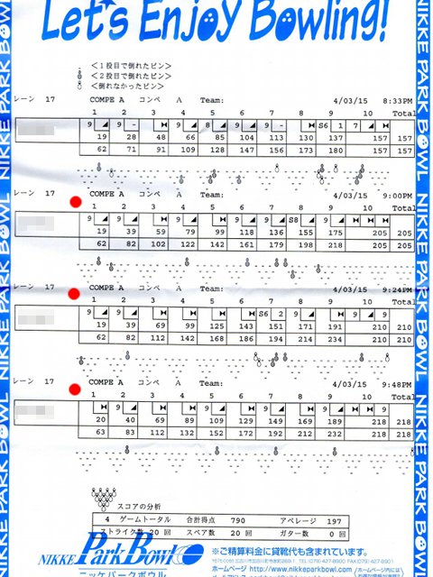 | 6 | ! | 728 | 0 | 46 | 0 | 0 | ハイゲーム3位、最大ローハイ差、殊勲6、敢闘3、プラス |