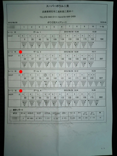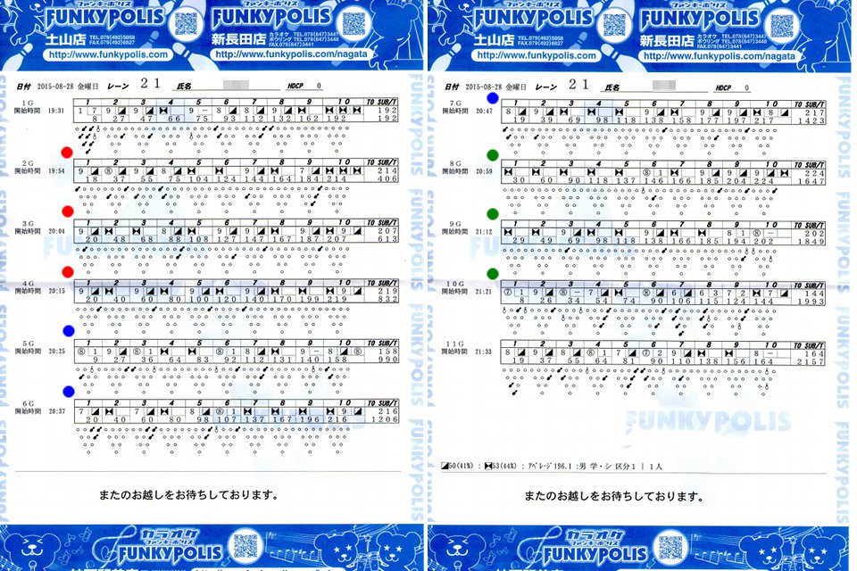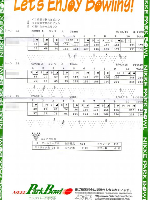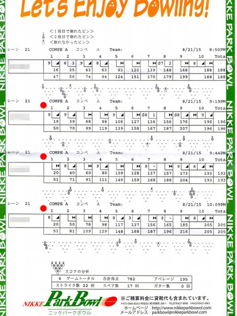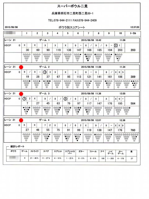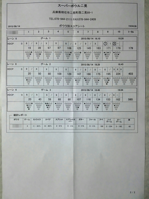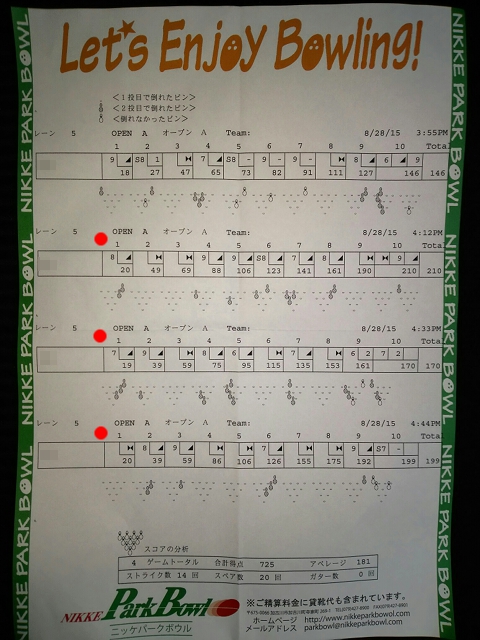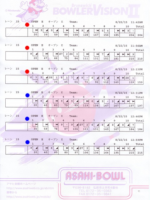 | 1 | ! | 749 | 0 | 676 | 2 | 2 | ハイゲーム3位、最多ストライク、完全勝利者、殊勲6、敢闘3、プラス |